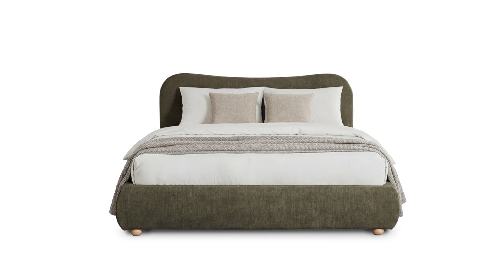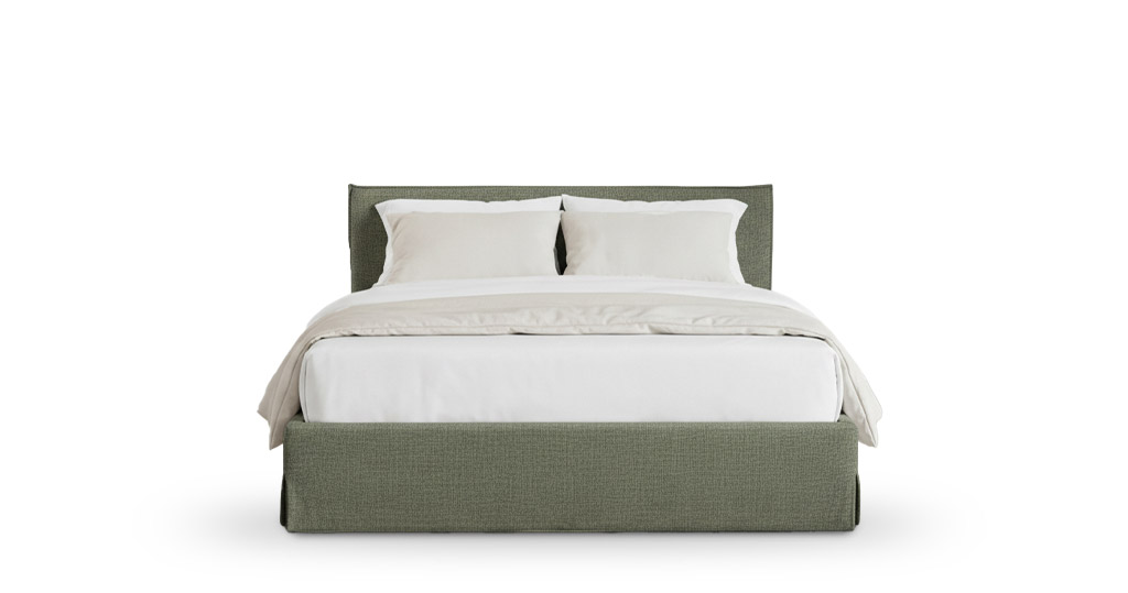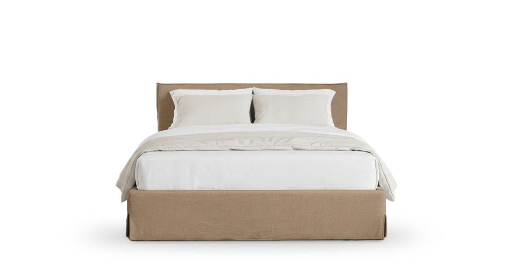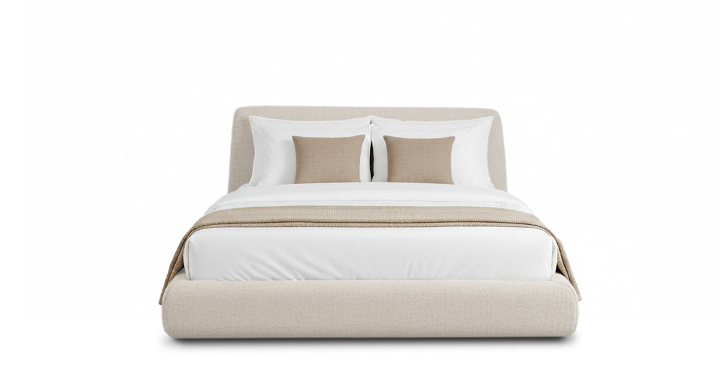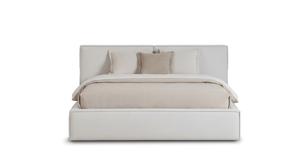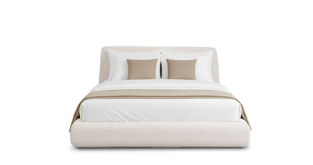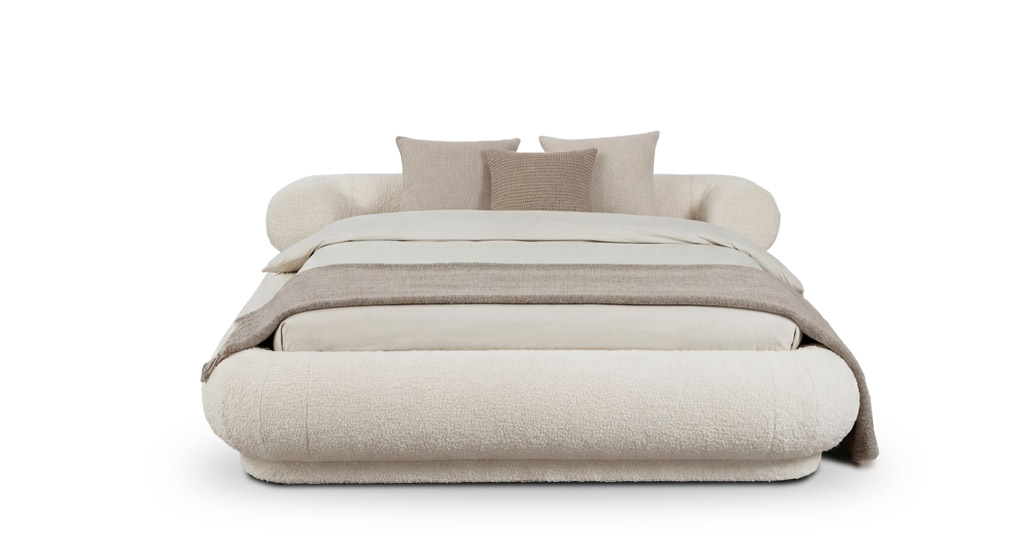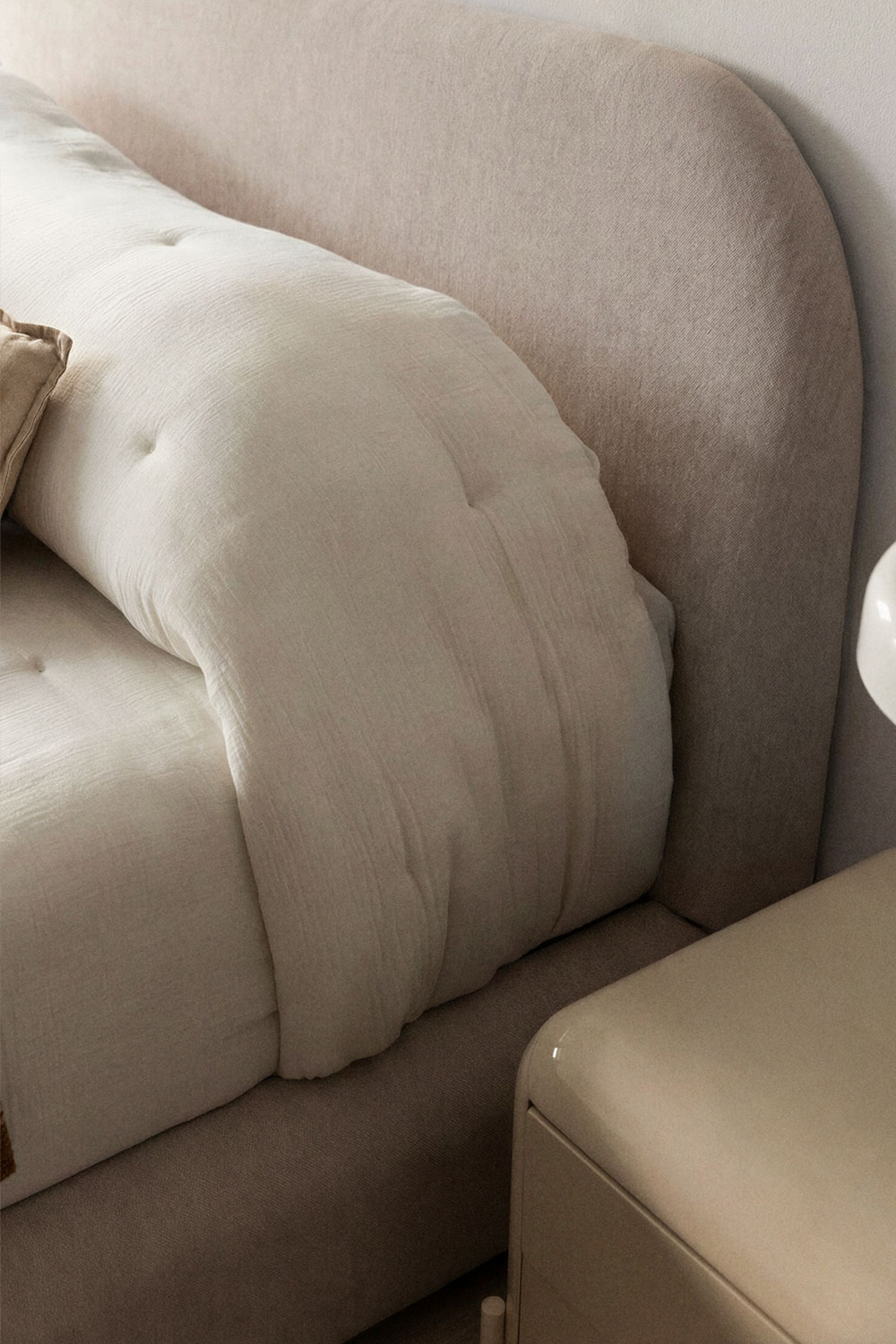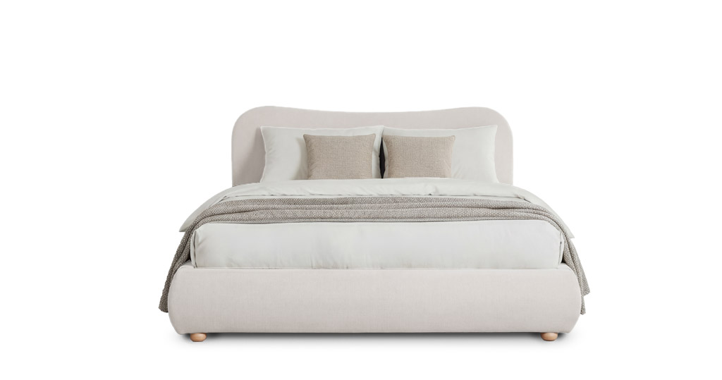 Bett mit Bettkasten 135x190cm in Eierschalenweißen Chenille Lorea