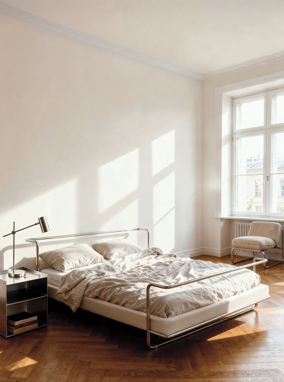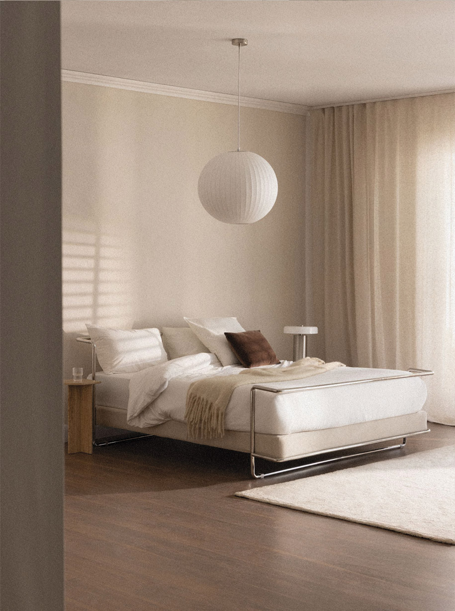 Igone besticht durch ihre Metallstruktur mit schlanken Linien, die dem Schlafzimmer Charakter und visuelle Leichtigkeit verleiht. Ihr zeitloses Design passt sowohl in moderne Einrichtungen als auch in Räume mit neu interpretiertem klassischem Stil und wird so zum Blickfang. Dieses Möbelstück ist für alle gedacht, die Wert auf erholsamen Schlaf mit Persönlichkeit legen, wo Ästhetik und Stabilität in perfekter Balance stehen.