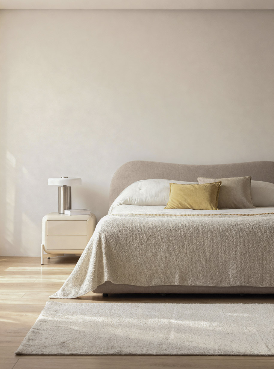 Umschmeichelnde Texturen und ausgewogene Linien für ein Schlafzimmer mit Harmonie und eigenem Stil.
