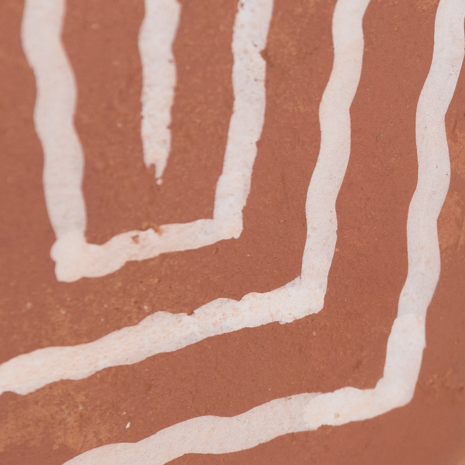 Pieza de líneas rectas, moldeada, secada y pintada a mano.