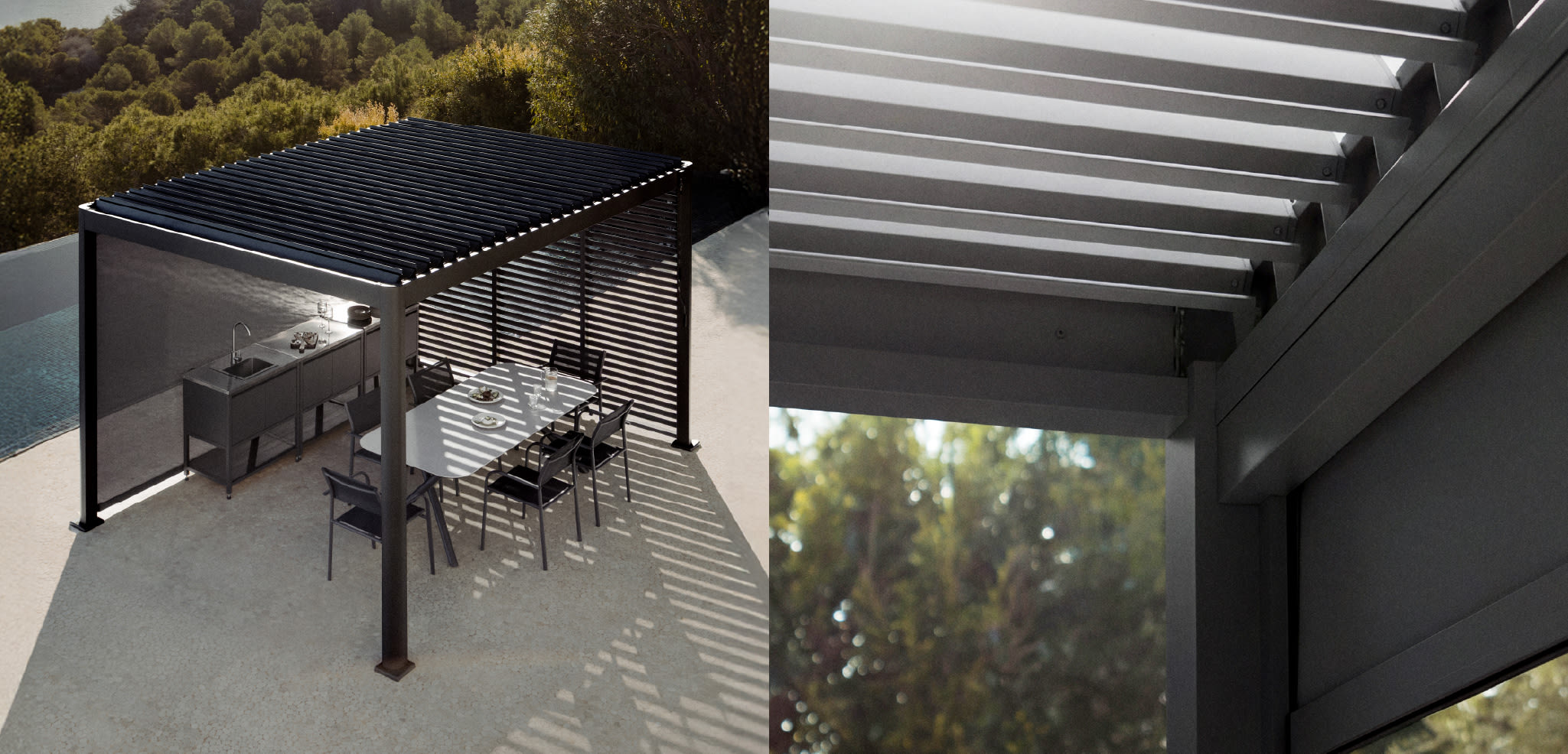 Configure ta pergola bioclimatique sur mesure et transforme ton extérieur en un espace adaptable toute l'année. Choisis les dimensions, les finitions, la couleur et ajoute des accessoires. Contrôle la lumière, la ventilation et la protection avec un système conçu selon tes besoins. Tu décides de chaque détail ; le résultat, une ambiance confortable et fonctionnelle à tout moment de la journée.