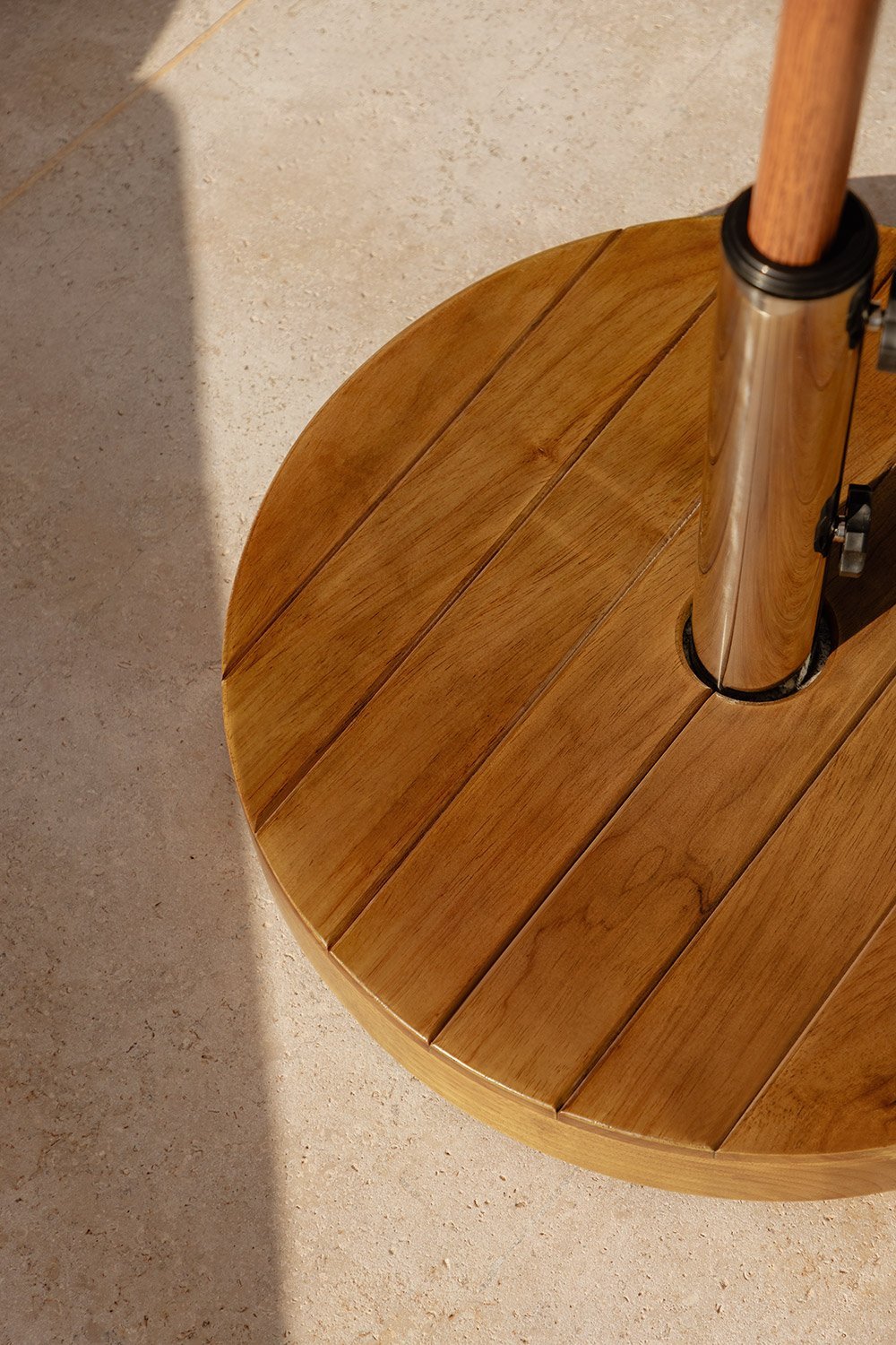Add a touch of natural elegance to your garden with the perfect parasol base! This Canco 50cm round wooden parasol base is much more than a stand; it's a piece that perfectly combines rustic and modern elements in any outdoor space. The circular design is finely covered in rubberwood , providing a warm and inviting finish. This material adds a touch of nature that's complemented by the sophistication of the stainless steel tube, which guarantees a solid fit for your parasol. Its internal base features granite , which not only provides stability but also a touch of robustness that ensures its durability. Thanks to its clean aesthetic and smooth lines, this base integrates easily into any type of outdoor decor, from contemporary spaces to more traditional environments. In addition, the tube adjustment mechanism ensures the stability and support of the parasol.