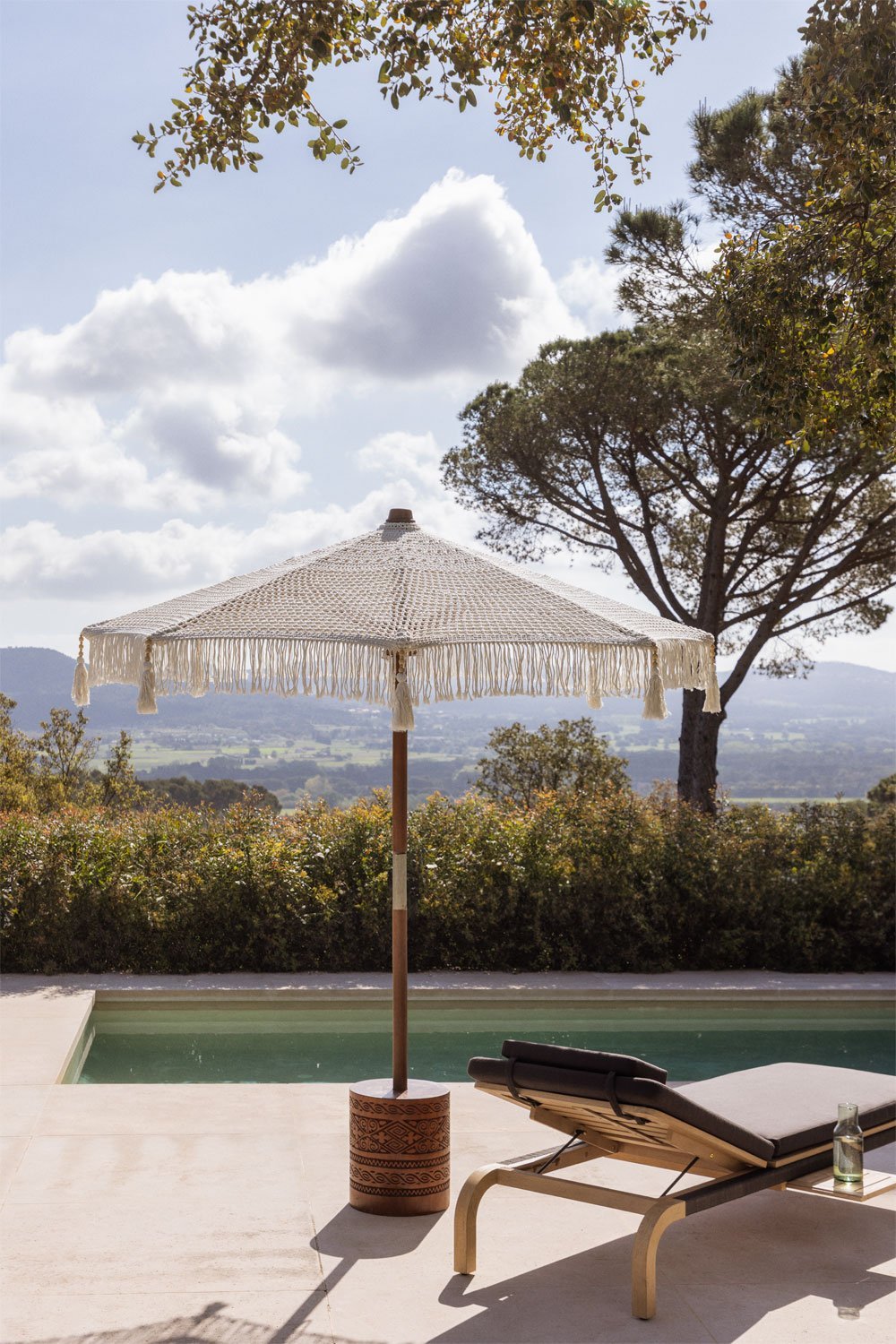 Wyobraź sobie, że odnawiasz swoje przestrzenie zewnętrzne, nadając im odrobinę boho i wyrafinowania. Parasol Tongariki wykonany z drewna tekowego i bawełny to dokładnie to, czego potrzebujesz, aby przekształcić swój taras, ogród lub patio w oazę komfortu i stylu. Ten wyjątkowy parasol, łączący w sobie drewno tekowe z naturalnym wykończeniem, wyróżnia się solidną konstrukcją i eleganckim wyglądem. Bawełniany klosz w neutralnych odcieniach dodaje odrobinę świeżości i pozwala światłu nieśmiało i przyjaźnie przenikać do wnętrza. Frędzle otaczające ekran dodają ruchu i charakteru , czyniąc go naprawdę wyjątkowym dziełem. Ten parasol nie tylko przyciąga wzrok, ale został również zaprojektowany z myślą o codziennej praktyczności. Jego pionowa konstrukcja jest wytrzymała i zapewnia odpowiednią osłonę podczas przyjemnych, słonecznych popołudni. Dzięki Sklum przekształcenie przestrzeni zewnętrznej nigdy nie było łatwiejsze. Zaufaj Tongariki , idealnemu uzupełnieniu oferty, by cieszyć się chwilami relaksu w wielkim stylu.