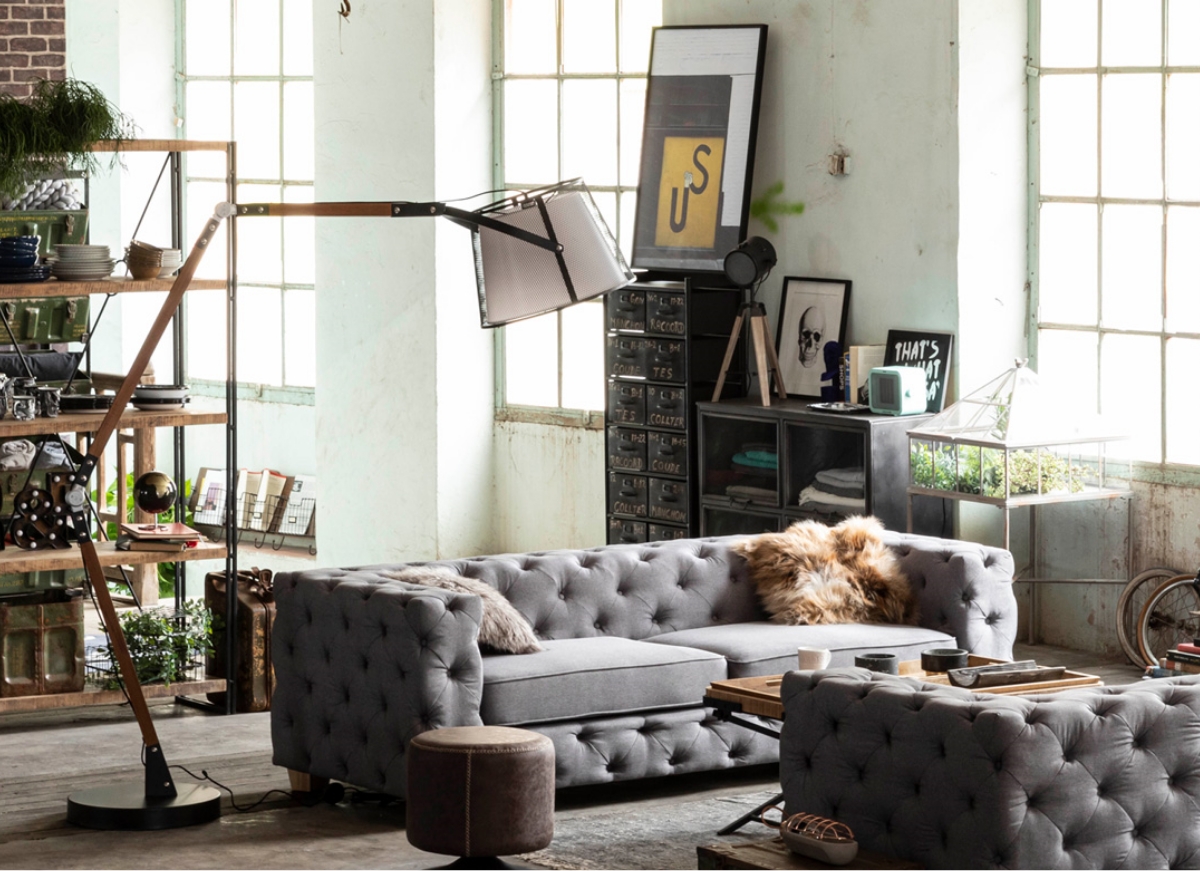 A decoração de estilo industrial caracteriza-se por combinar materiais como metal, couro e madeira nas suas composições, apostando em prateleiras metálicas, mesas de trabalho antigas e sofás de couro.